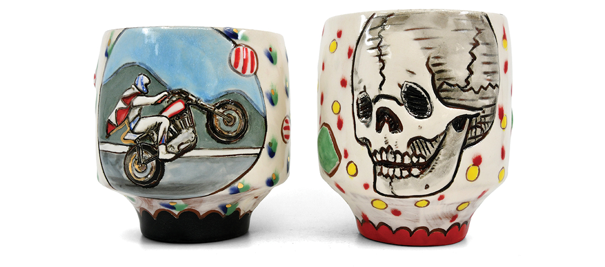 Silver Run Ceramics, the collaborative studio of artists Michelle Lyn Strader and Frederick Bartolovic, will also be featured. “Each piece is thoughtfully crafted and a one-of-a-kind artwork, yet durable enough for use in daily rituals,” says Strader. “Typically Frederick throws the pieces on the wheel, while I paint and carve each piece by hand with elaborate illustrations.” Their pieces for the exhibition include beer steins, bourbon bottles and bourbon cups.