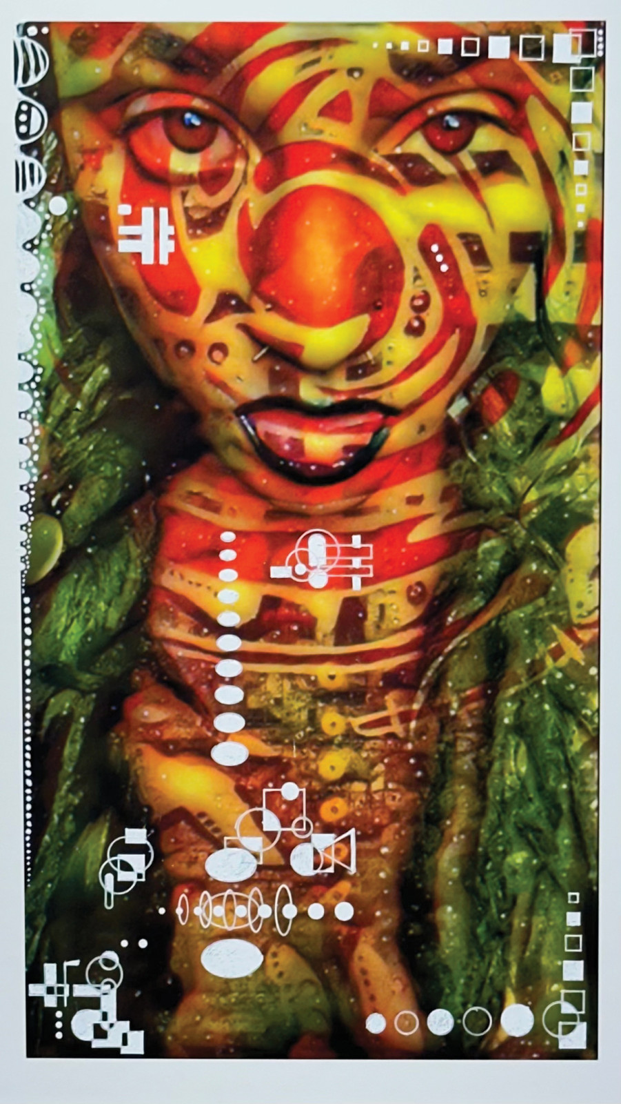 For Nelson, Filthy Casual marks a creative pivot away from traditional painting and into the digital realm. “I had messed around with [digital creation] years back with apps on my phone and recently ran across new apps that offered a much more advanced way [to achieve] the results I was looking for, so I decided to go at it again,” says Nelson. “All these creations are manipulated strictly on my phone, then the digital file is sent to be printed. Once I get the print back I do more line work on it. Then, finally, I’m adapting each frame to tie into the design of the image.”