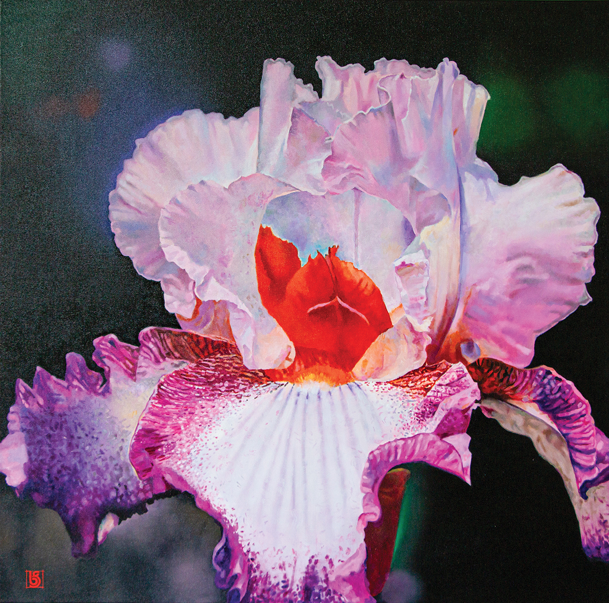 His series generally are composed of six to nine paintings, and he finds excitement in seeing how each piece relates to the others as he works. The Iris series was one he wanted to have finished for an upcoming show at the Asheville Gallery of Art. “I painted one a month for the five months preceding the show,” he says. “That was a marathon, and I finished just in time. After that, I didn’t paint for two months and spent time thinking of the next series.”