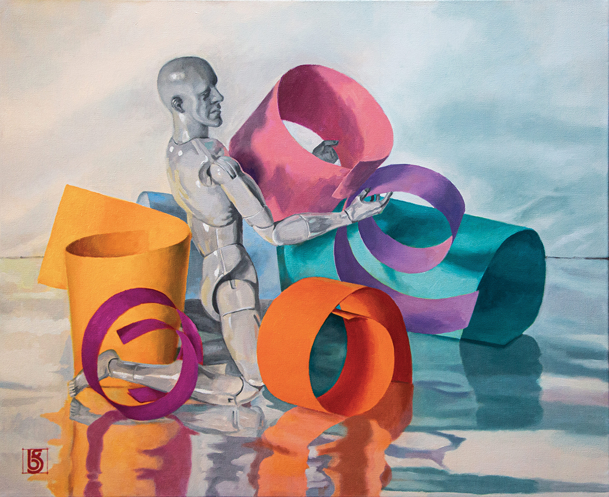 His work is represented by the Asheville Gallery of Art, where, says gallery president Margie Kluska, George takes time to help other artists with all aspects of their art—from gallery operations to framing artwork. “His paintings are exquisite representations of still-life objects—autos, flowers, paper/scissors/stones and, recently, paper curls,” Kluska says. “He chooses interesting backgrounds—sometimes subtle and sometimes adding pizzazz to his work. The details of his objects are so realistic as to make you believe they are photos, but they have an added touch of glamour that pulls you into the painting.”