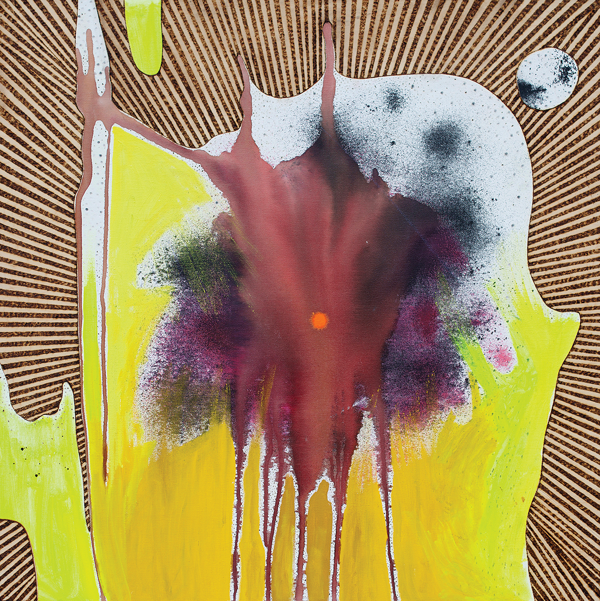 Nabil created work for the exhibit with his process contributing to the theme. “The work mainly revolved around ideas of fire, conceptually and literally, since I use fire to make my work,” he says. “So I had paintings that explored ideas of passion and war, but I also had lava and friendly fire and volcanoes.”