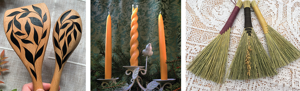 During the day-long class, participants will create three small brooms, three candles and a pair of wooden spoons. “The class is held in a very intentional way and the teachers help remind students that it’s not about perfection, it’s about the process,” Zola says. Taking up the study of herbal medicine at age 19 led her to the exploration of traditional and earth-based skills and crafts, including broom-making.