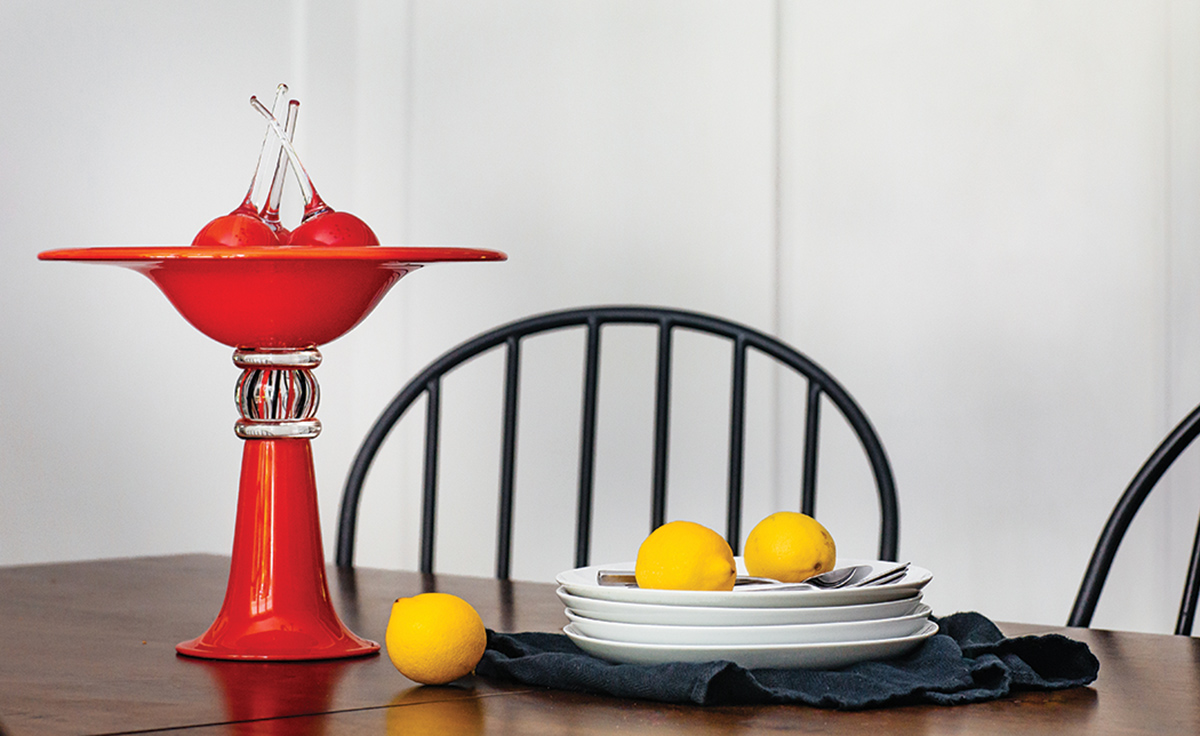 Red Pedestal Bowl with Cherries. Scott Summerfield, artist