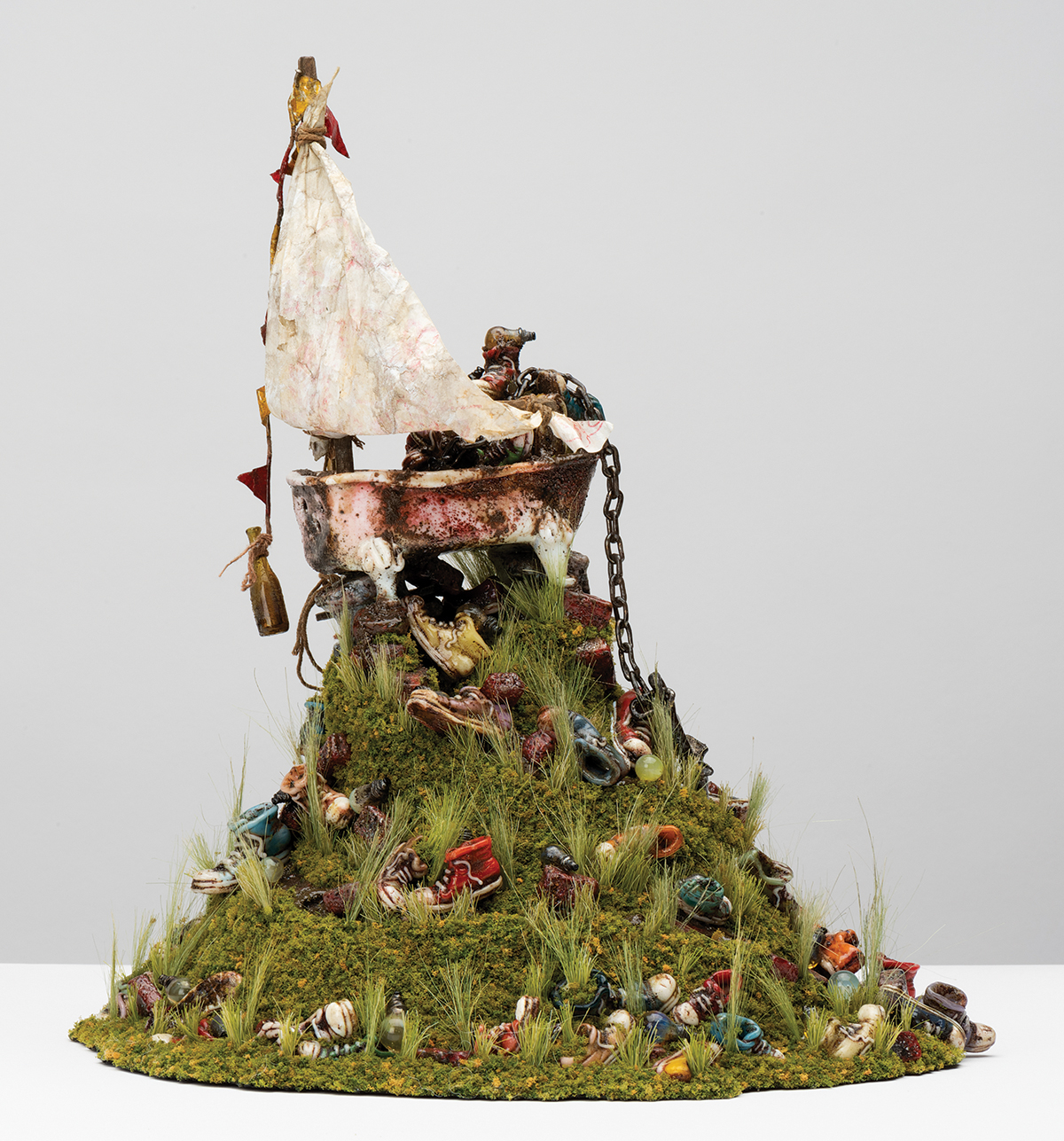 After more than a decade, she was ready to move on to creating with glass in a way that tapped into her passions. “Sculpting, storytelling, inventing and the secrets of the universe are what really interest me,” Thomas says. “I decided to commit to making narrative sculpture and introduce other media to my work as well.”