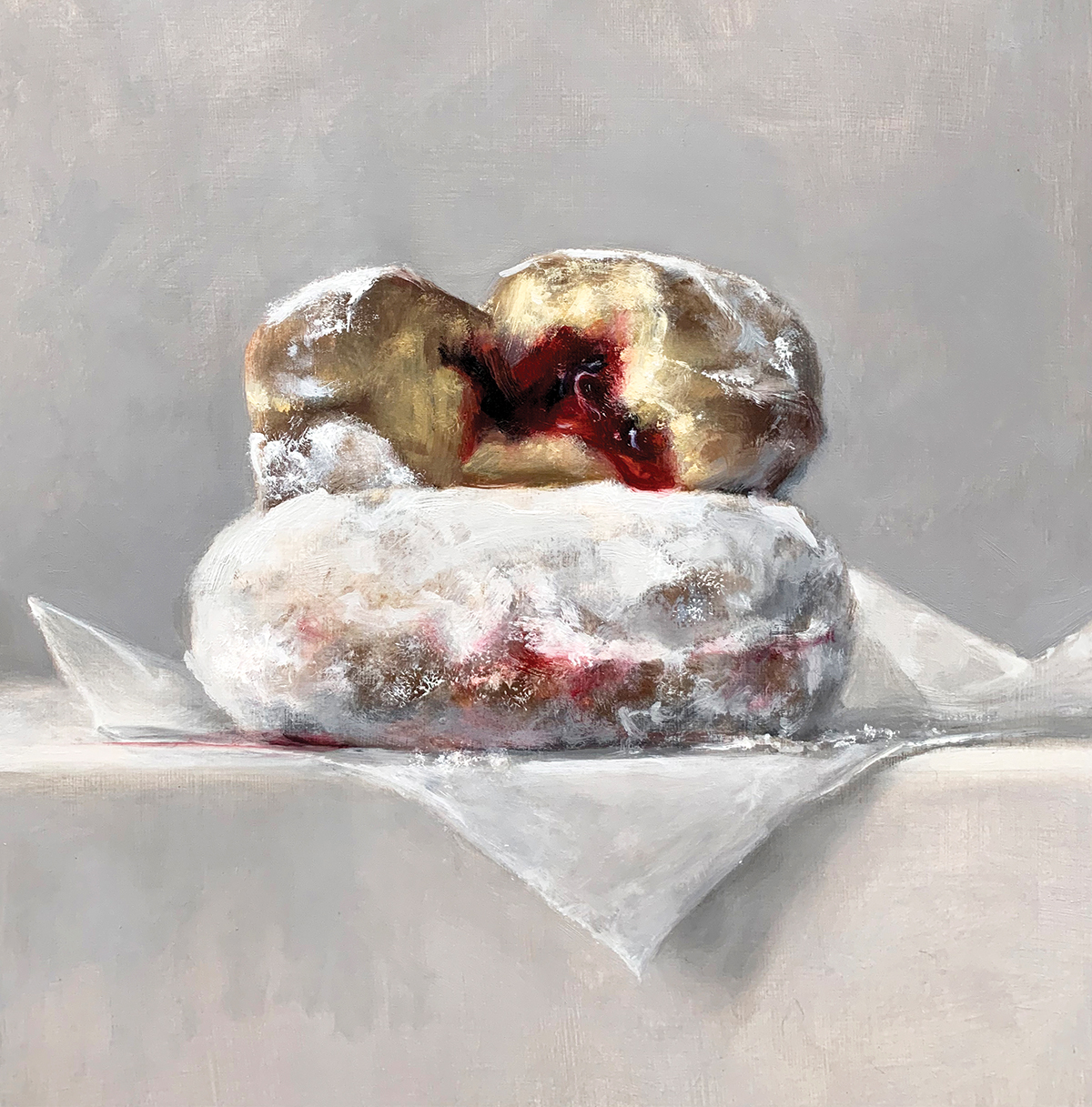 Michael Fitts approaches still life as a hybrid of traditions. “I see it as a fusion of four artistic traditions: still life, realism, trompe-l’œil and American pop art,” he says. “We all have remembrances of the things and objects that give meaning to our lives. These paintings will be received differently by each person.”