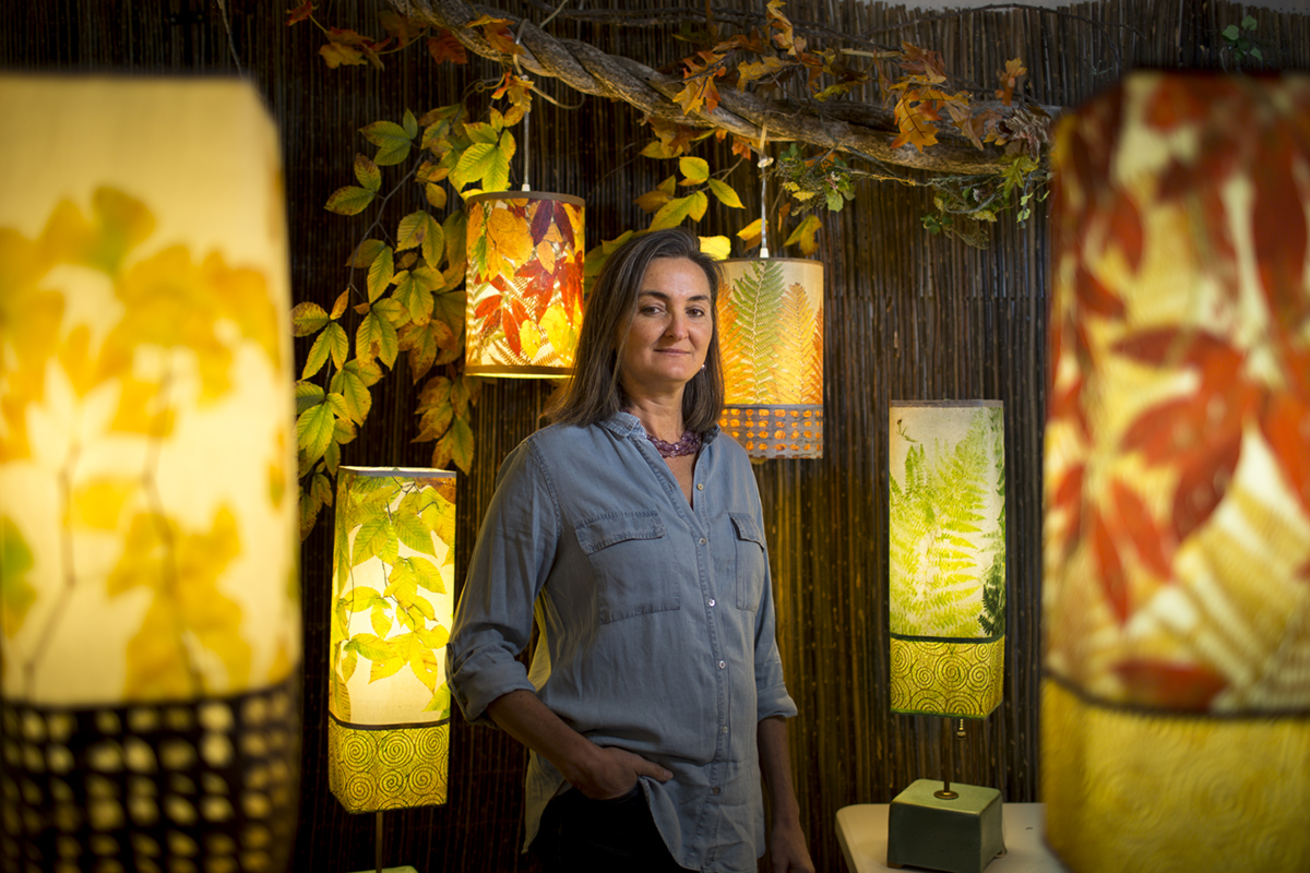 Baker, owner of Luminosa Lighting, has been with Woolworth Walk since 2014. She first discovered lampmaking as an art form in California 25 years ago. “A friend introduced me to an artist and designer who was just about to launch his beautiful lamp collection using handmade papers, twigs and stone,” Baker says. The artist says she took to the process like “a fish to water,” and spent the next two years as a master lamp shade maker. “Each lamp was a little masterpiece,” she says.