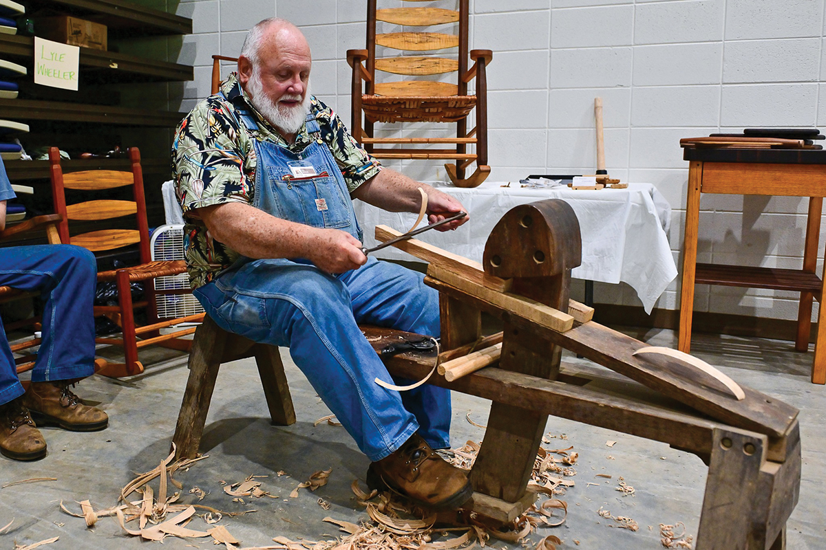 The process Hennigar uses speaks to the fusion of artistry and engineering that defines much of the region’s woodworking. “Glue joints add strength and integrity, as seen in the roof beams of the Folk Art Center,” he says. This year’s materials also carry symbolic weight. “I’ll be steaming and bending wood from Helene fallen trees,” he says. “I remember my first windfall wood supply from Hugo in 1989.”