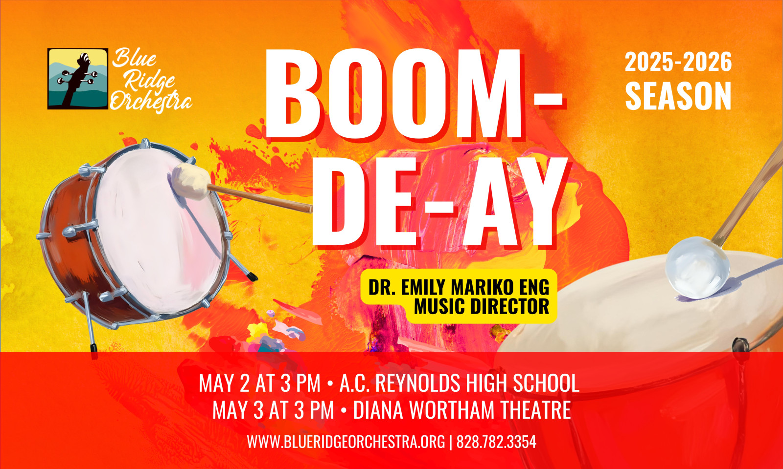 Info:https://blueridgeorchestra.org/boom-de-ay-may-2026, Facebook, Instagram, or call 828-782-3354.