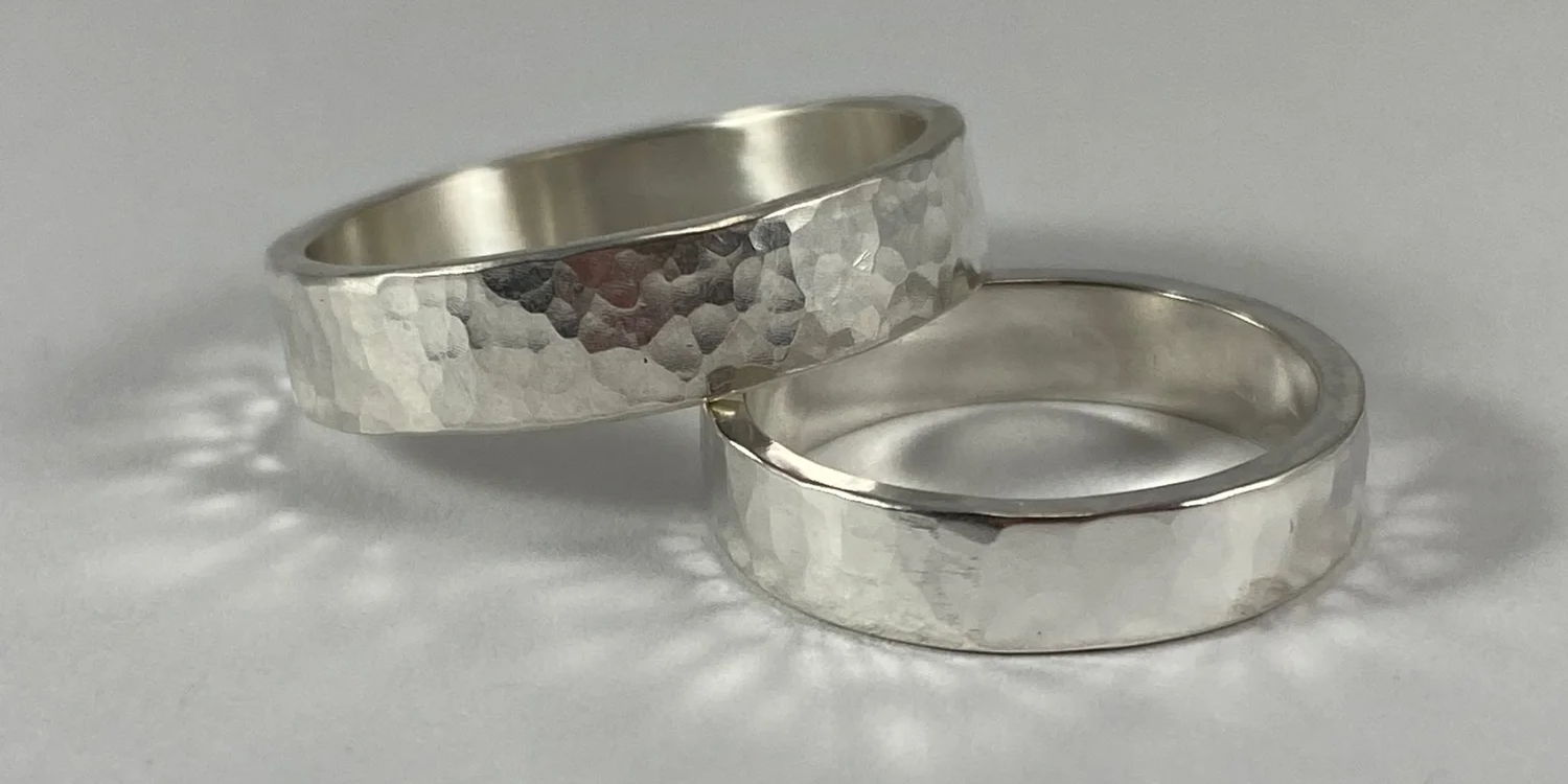 Join us in this hands on class where you will make a hammered sterling silver wide band ring. One of Ignite’s fabulous instructors will take you through the process step by step including soldering, shaping, hammering, and finishing your ring. These also make great wedding bands! Come make your own wedding bands (or each other’s) in our fully equipped studio. Or just take this as a fun make-and-take in our amazing maker space. This class is a little taste of what it’s like to make jewelry as a profession. You’ll leave with a beautiful ring made to size in our downtown Asheville metalsmithing studio. $120 includes all materials Arrive 15 minutes early to sign the safety waiver and get settled. *Convenient parking is available just below the studio in either the Harrah’s Parking Garage or Rankin Parking Garage, 1st hour is free!
