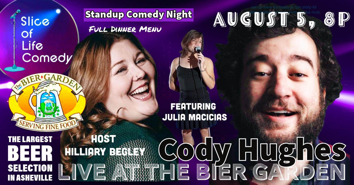 Hosted by Hilliary Begley of Netflix & Amazon Prime, voted Asheville’s favorite comic in the Mountain Xpress! Headline Cody Hughes! And featuring Julia Macias!! Don’t want to miss this show, get tix early!
