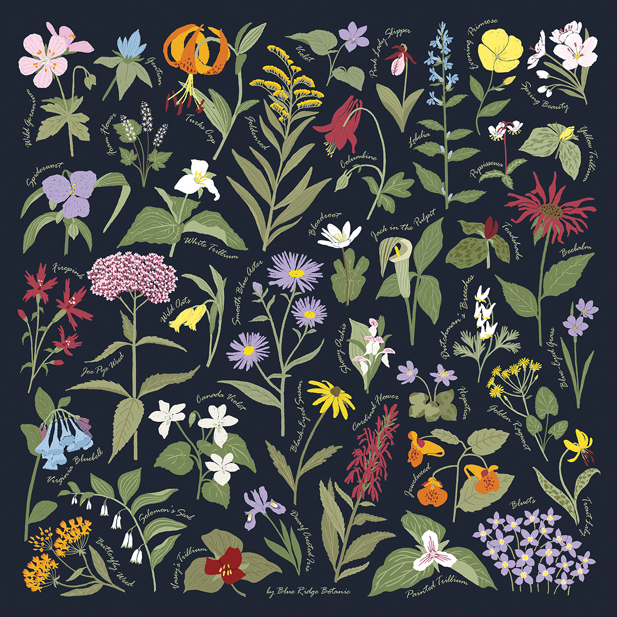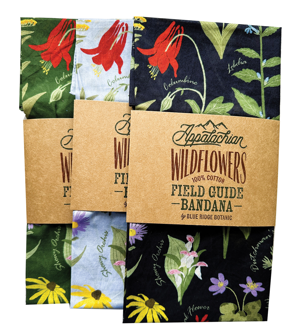 Learn more at BlueRidgeBotanic.com. A portion of bandana sales is donated to help support Conserving Carolina and United Plant Savers, organizations that engage in wildflower restoration efforts.