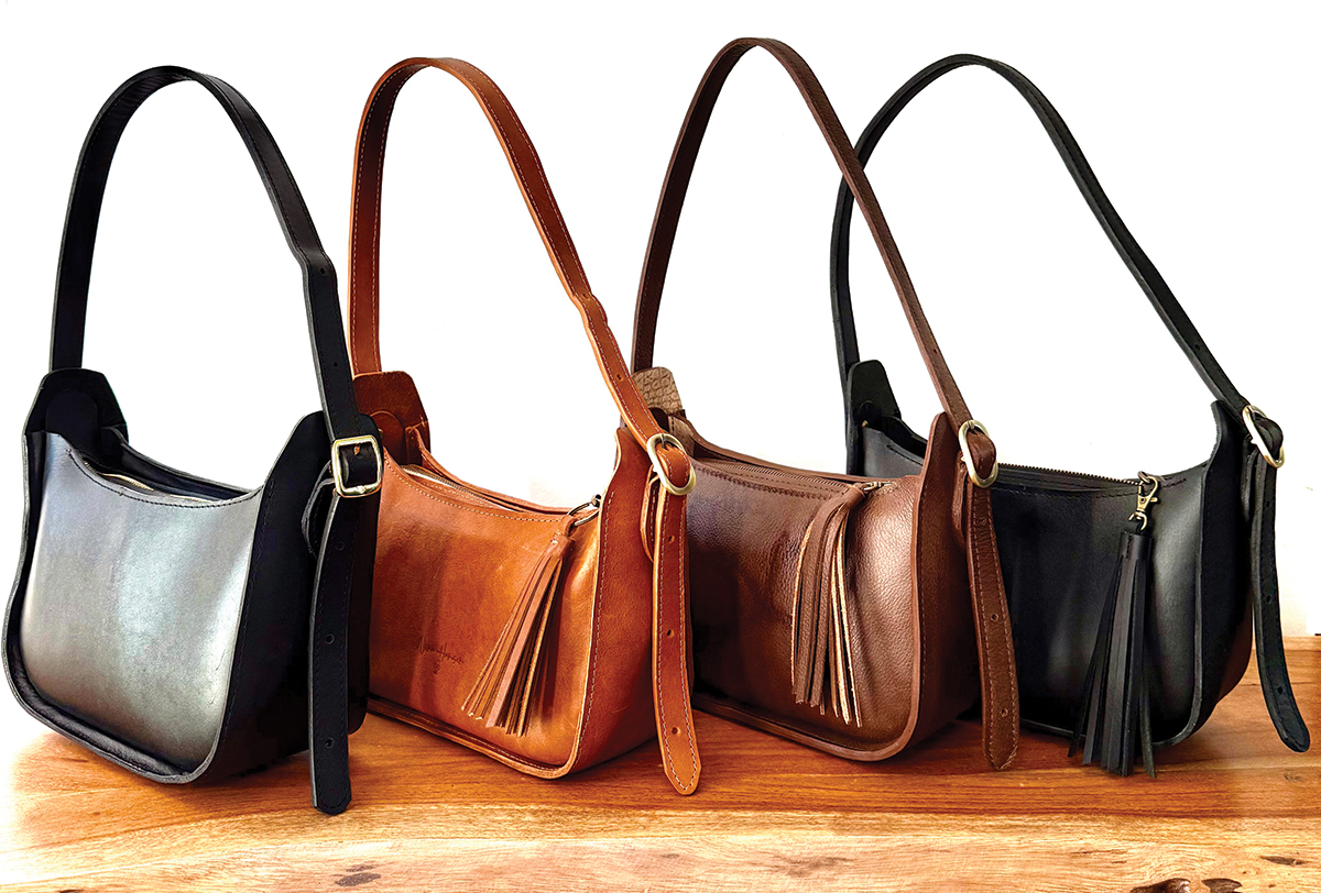 She draws inspiration from vintage silhouettes, rich textures, western horse tack and boho style. “The freedom of designing something beautiful, paired with the discipline of proper construction, is where I flourish,” Hansen says. “It feels like placing a saddle on a wild horse—harnessing creativity and structure at the same time. Every piece I design carries a part of my heart. I often imagine the woman who will one day carry it—feeling that spark of joy as she picks it up and steps into the world. My hope is that each bag offers comfort and delight, a reminder that it was made with gladness, care and admiration.”