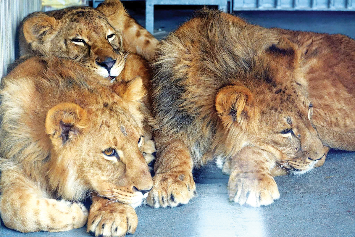 Lions evacuated from Ukraine in new home at Poznan Zoo in Poland. Image ©2022 Poznan Zoo