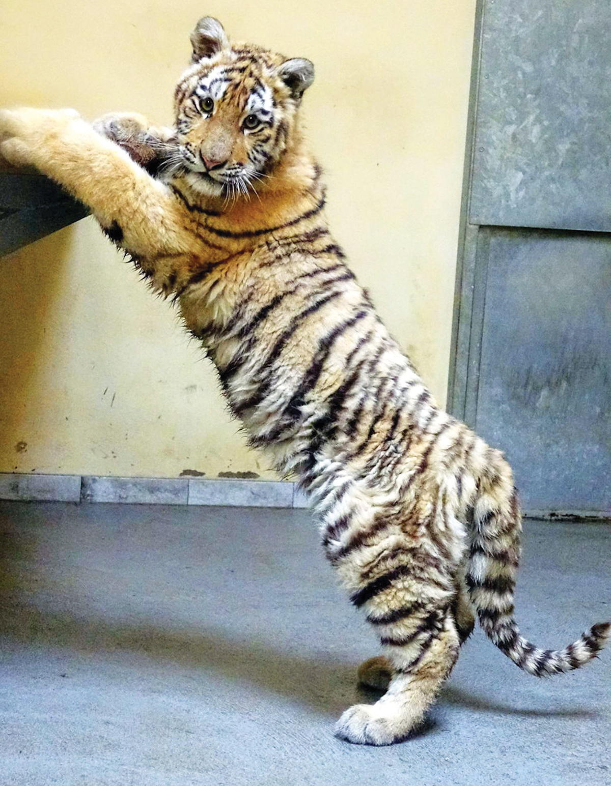 Young tiger evacuated from Ukraine in new home at Poznan Zoo in Poland. Image ©2022 Poznan Zoo