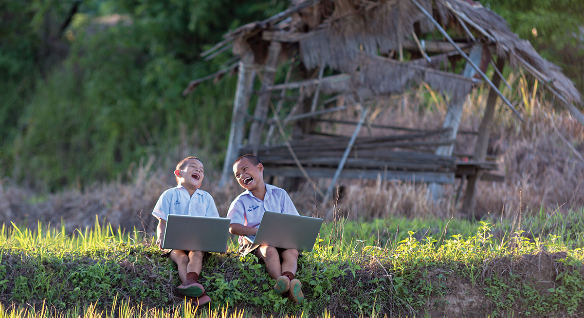 Thai rural students Learn from the notebook .