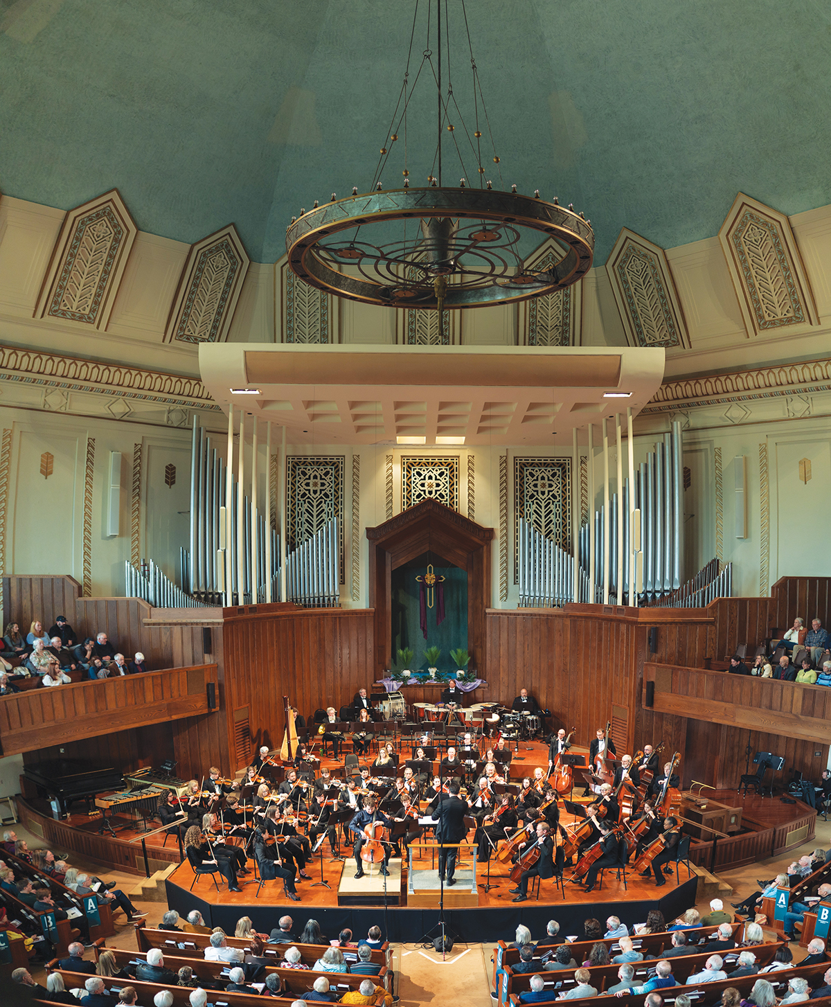 Asheville Symphony performances continue to be held at various venues throughout Asheville, including the First Baptist Church of Asheville. “The space is magical,” Butorac says. “The acoustic is excellent and the round shape of the space creates an incredible bond between the performers and the audience. It is very special, one of my favorite spaces I have ever performed in.”