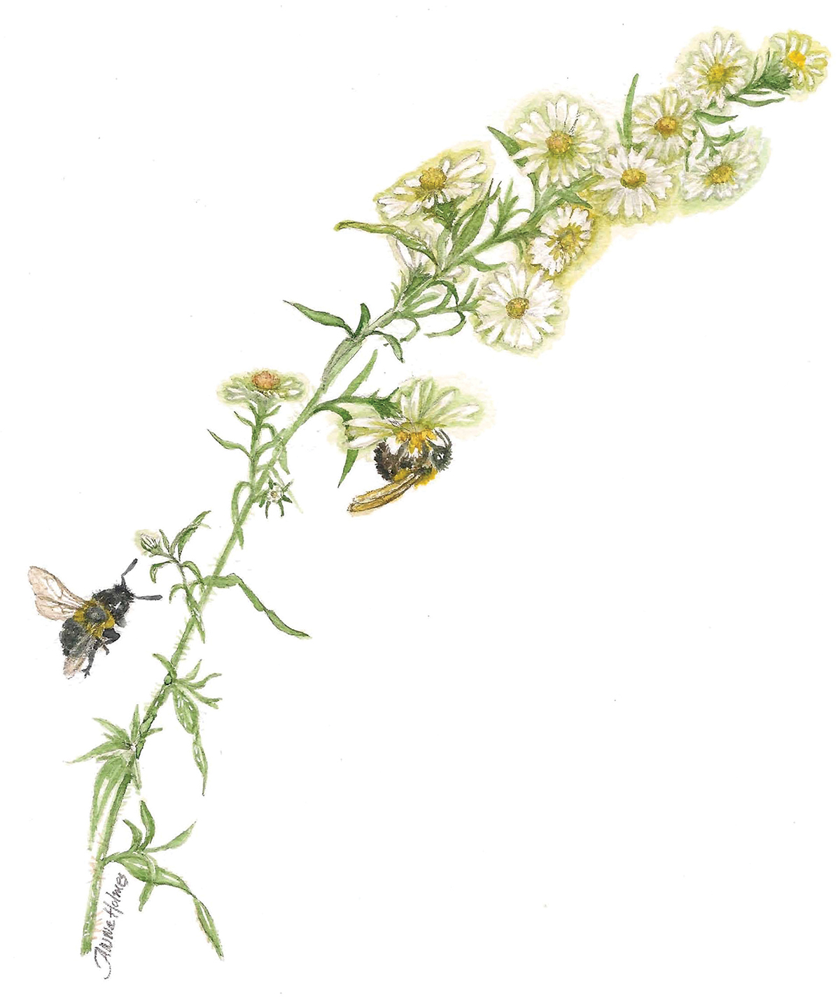 As the world of herbaceous perennials sinks into sleep in November, the gardener has only a few native plants still in flower to feed pollinators. Reliable and showy, the Frost Aster, Symphyotrichum pilosum, is chief among them. With its gracefully branching sprays of small, daisy-like flowers, Frost Aster attracts and feeds many late-season pollinators, including migrating butterflies and ground-nesting bumblebees.