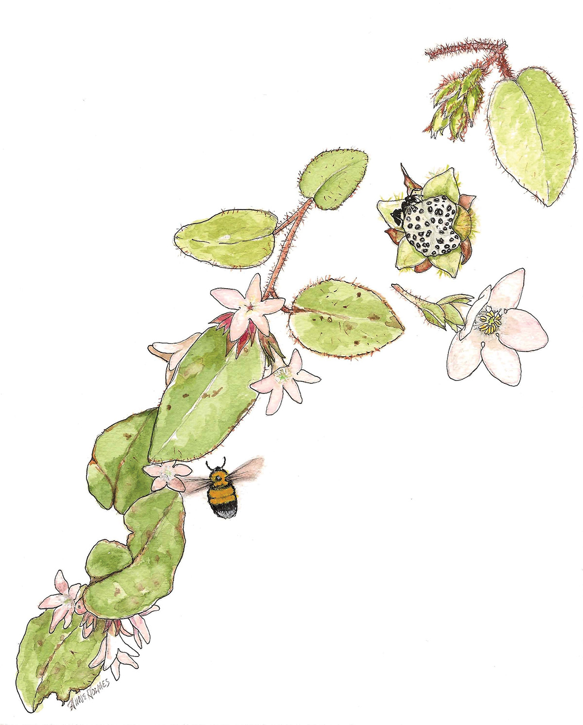 Trailing arbutus is best appreciated in the wild, as it is very difficult to raise from seed and almost impossible to transplant because it depends on mycorrhizal associations for good health. The seeds of trailing arbutus—like those of trout lilies, trilliums, bloodroots and Dutchman’s breeches—include elaiosomes, small packets of lipids and proteins that are an irresistible treat for foraging ants, who disperse the seeds by carrying them back to their nests. In the wild, trailing arbutus is important as an early source of food for queen bumblebees as they emerge in spring.